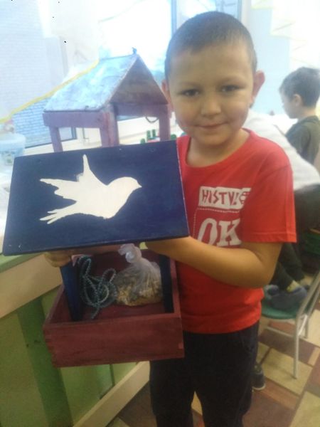 Никита вместе с папой сделал отличную кормушку для птиц. Теперь птицы зимой не останутся без корма.