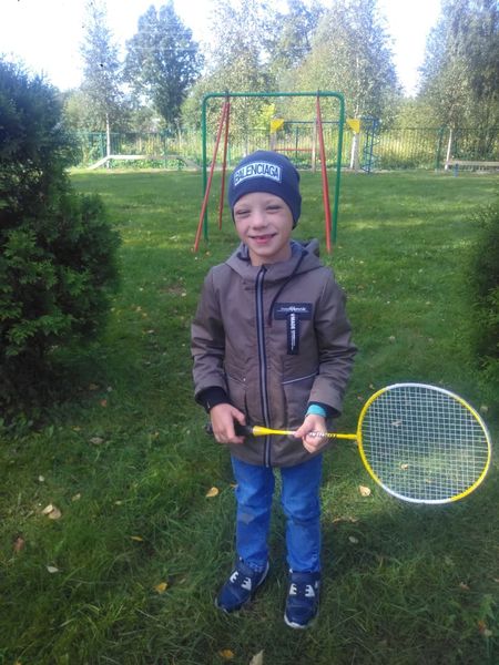 Денис научился играть в бадминтон. Он так заинтересовался игрой, что и Диму стал учить.