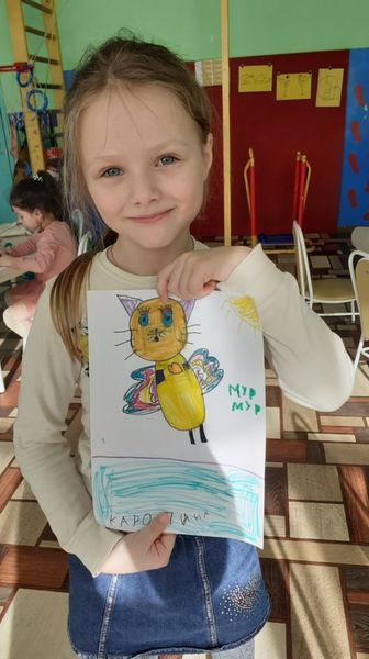 Какие же творческие наши дети! Вы только посмотрите на этого «весеннего котика»! Сколько любви, добра и тепла в самом рисунке и глазах автора! Спасибо Каролиночке!