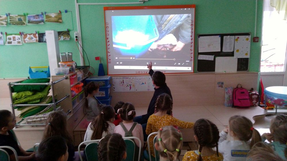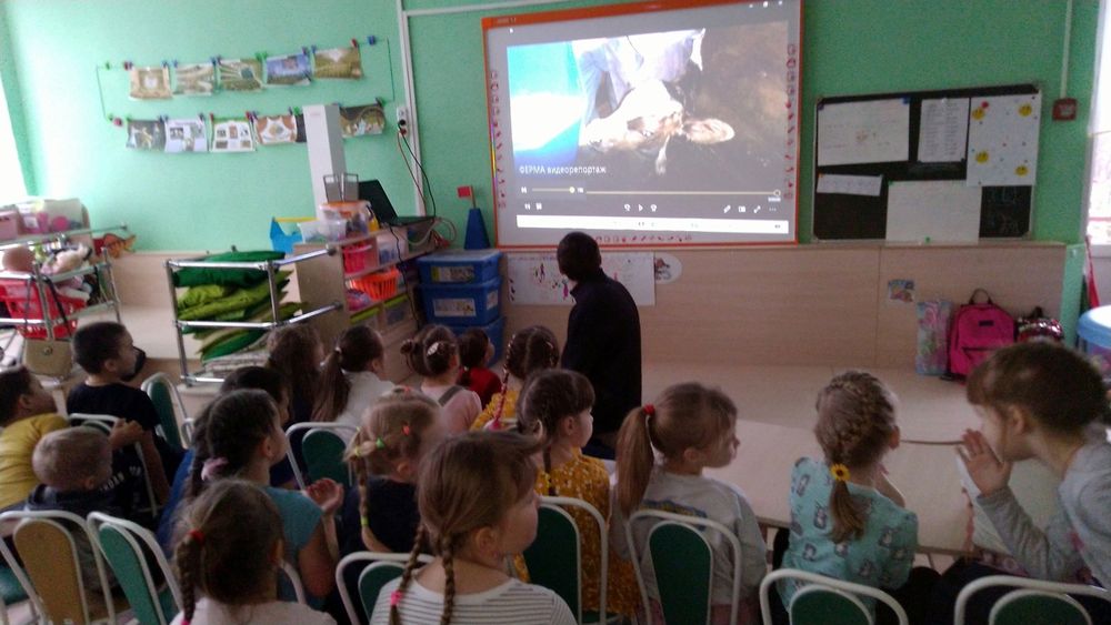Сегодня в рамках проекта «Молочная ферма» папа Лукьяновой Маши Евгений Андреевич рассказал ребятам много интересного и познавательного о фермерстве: кто такой фермер, чем он занимается, какие животные живут на ферме. Дети узнали, что такое хлев, стойло, кормодробилка, пастьба, моцион! Какой восторг вызвал у детей видеорепортаж о жизни фермы! А ещё Евгений Андреевич рассказал, что недавно у их коровы Майи появилась тёлочка! А Маша попросила ребят помочь дать имя новорожденной. Дети написали имена на листочках и положили их в коробку, чтобы Маша могла выбрать имя наугад. Так и сделали! Теперь новорожденную тёлочку зовут Малинка - такое имя придумала Злата!