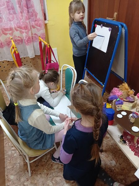 Утро "сказочных" детей. "Салон красоты" работает рядом со "Школой". И никто не мешает друг другу! Маша хочет быть учителем физкультуры! А Женя уже преподаёт уроки! Дамир конструирует вездеход, используя разнообразные инструменты. Артем создал необычный фотоаппарат и зарядное устройство к нему! Может это аппарат будущего? Варечка, Сонечка, Злата, София занимаются творчеством! Каждый занят интересным делом! И это здорово!